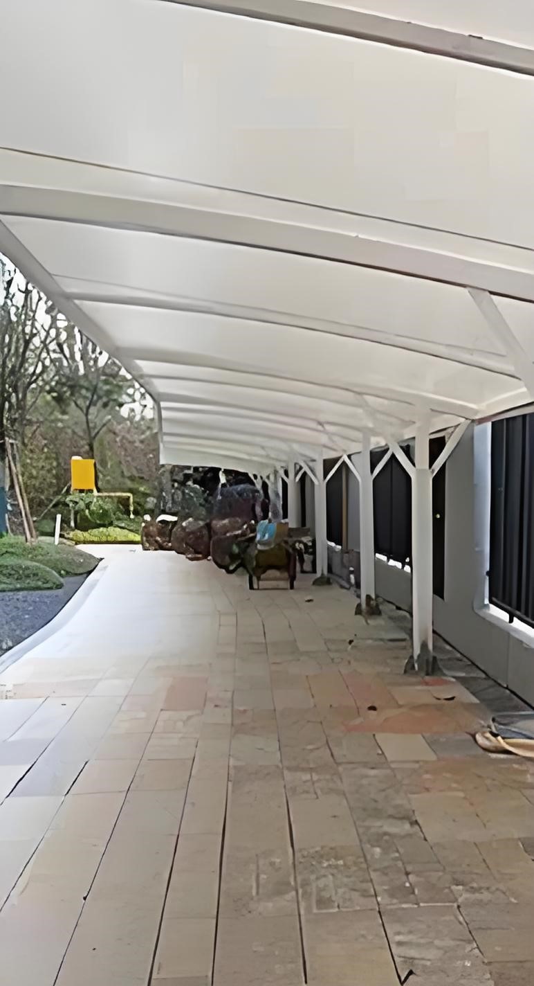 膜结构汽车棚常用的膜材料有PVC、PTFE和ETFE等。这些材料各具特点,PVC膜材在一般气候条件下表现良好,价格相对较低;PTFE膜材具有更好的耐候性和自洁性,但价格较高