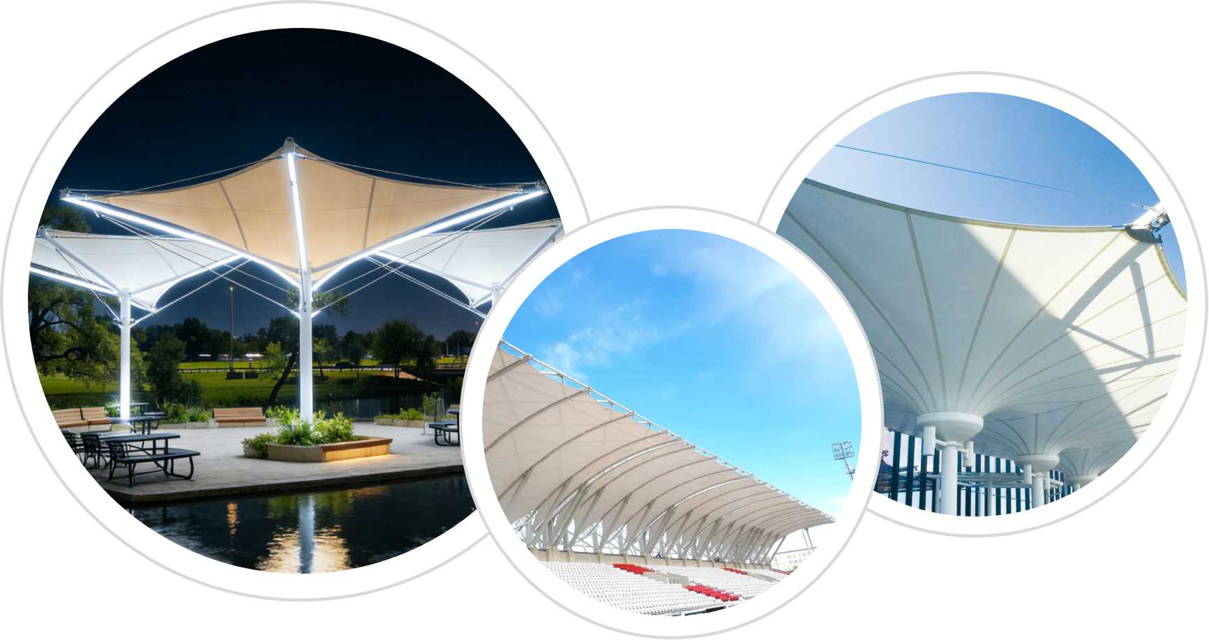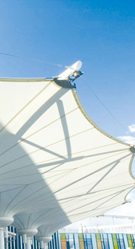 公司开发的膜结构建筑风格独特,艺术性强,具有浓厚的现代气息,广泛应用于体育场馆、高速公路收费站、加油站、大型停车场、博览会展厅、公共场所、休闲场所、景区装饰等。